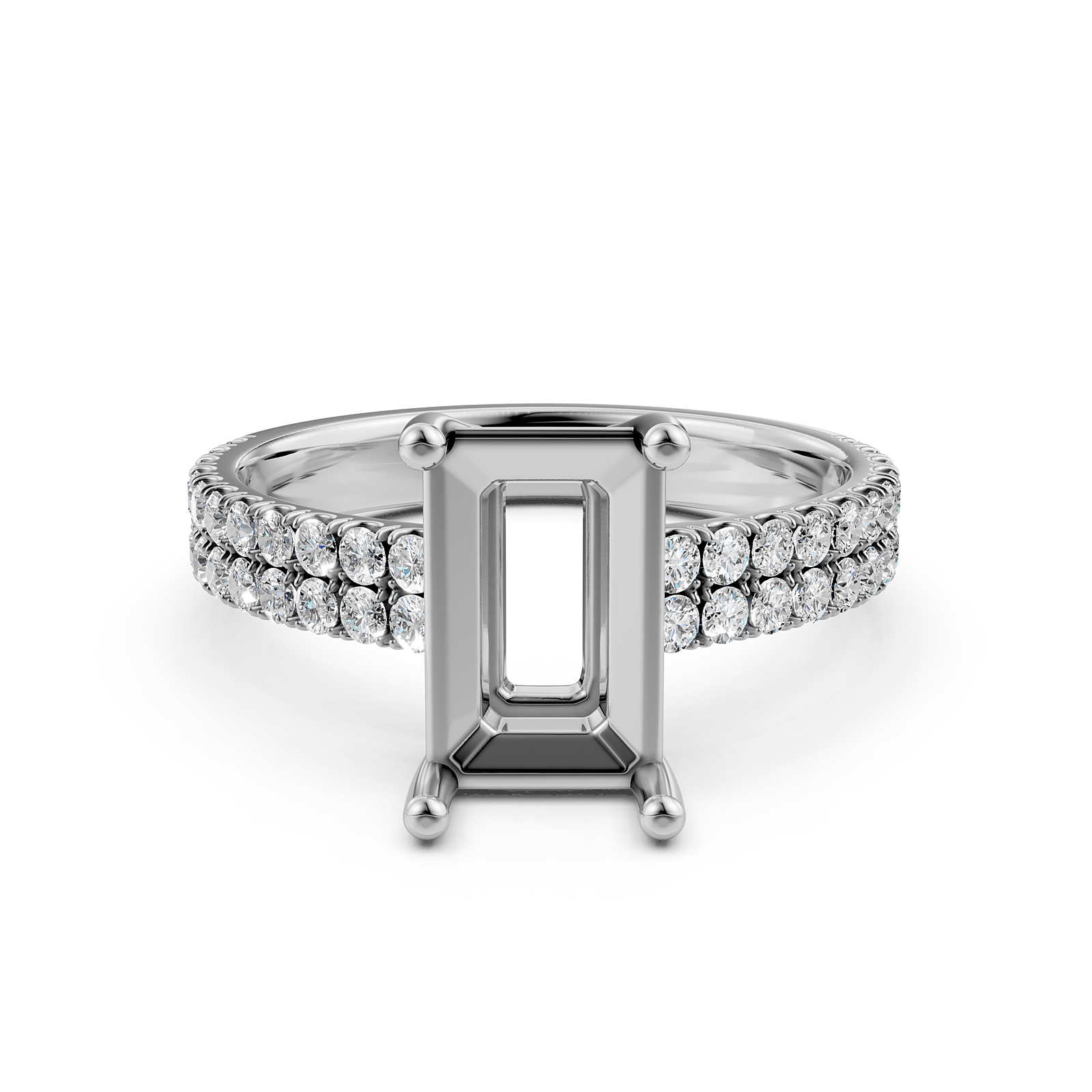 U Cut Prong Setting Diamond Engagement Emerald Semi Mount Ring 14K W Gold 0.50Ct