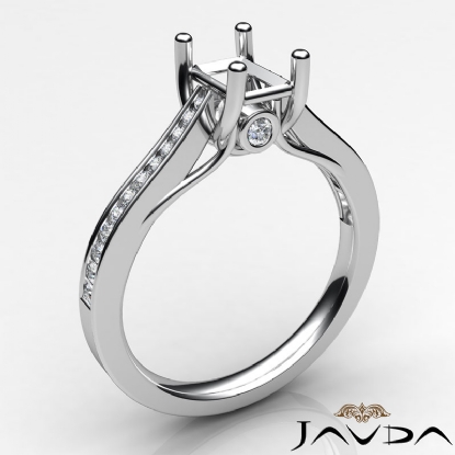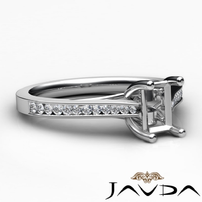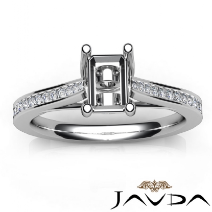 Channel Setting Diamond Engagement Emerald Semi Mount Ring 14K White Gold 0.30Ct