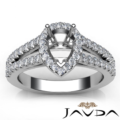 Gorgeous Halo Prong Diamond Engagement Pear Semi Mount Ring 14K W Gold 0.75Ct