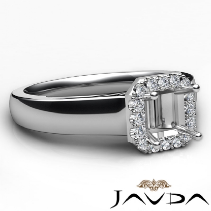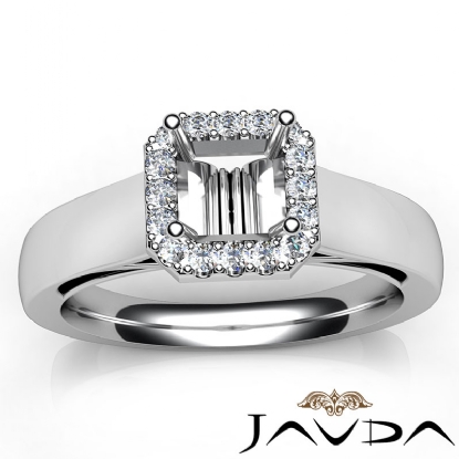 Asscher Diamond Engagement Halo Pave Setting Semi Mount Ring 14K W Gold 0.20Ct