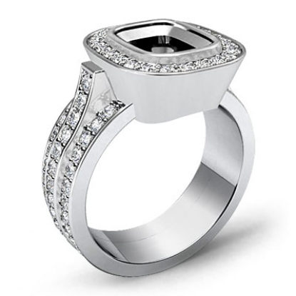 1.65Ct Halo Setting Diamond Engagement Cushion Semi Mount Ring 14K White Gold