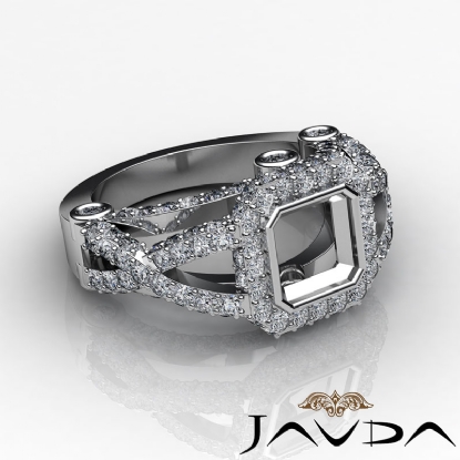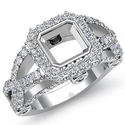 1.40 Ct Diamond Engagement Ring Asscher Semi Mount 14K White Gold Halo Setting