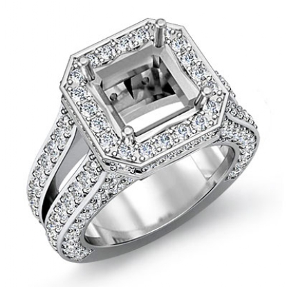 2.52 Ct Diamond Engagement Ring Princess Semi Mount Halo Setting 14k White Gold