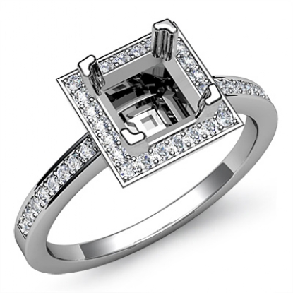 1Ct Diamond Engagement Ring Halo Setting 14k White Gold Princess Shape SemiMount