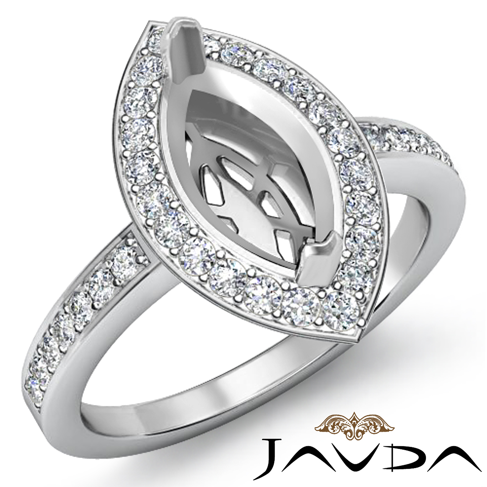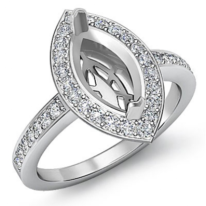 1Ct Halo Setting Diamond Engagement Marquise Shape SemiMount Ring 14K White Gold
