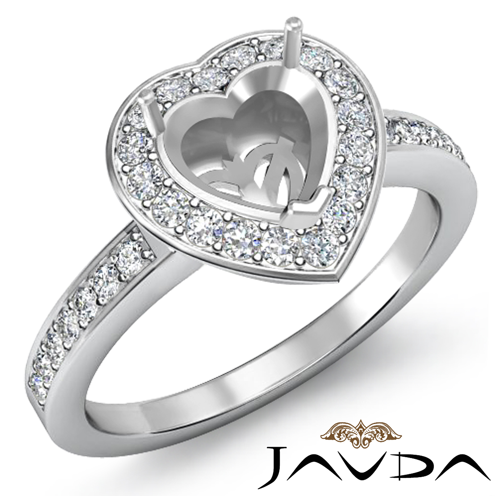 1.0 Ct Diamond Engagement Ring Heart Semi Mount 14K White Gold Halo Pave Setting