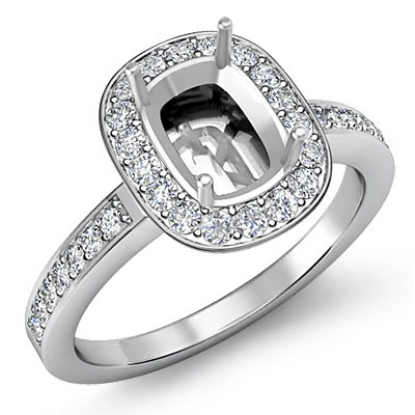 1Ct Diamond Engagement Cushion Shape Semi Mount Ring 14k White Gold Halo Setting