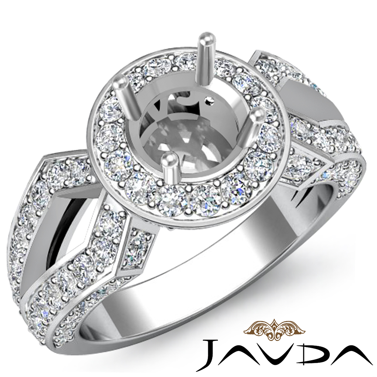 1.42Ct Diamond Engagement Halo Pave Setting Ring Round Semi Mount 14K White Gold