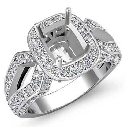1.44 Ct Halo Setting Diamond Engagement Cushion Semi Mount Ring 14K White Gold