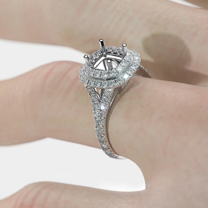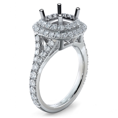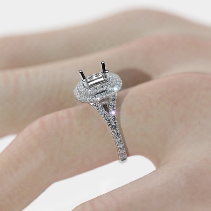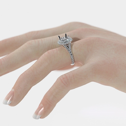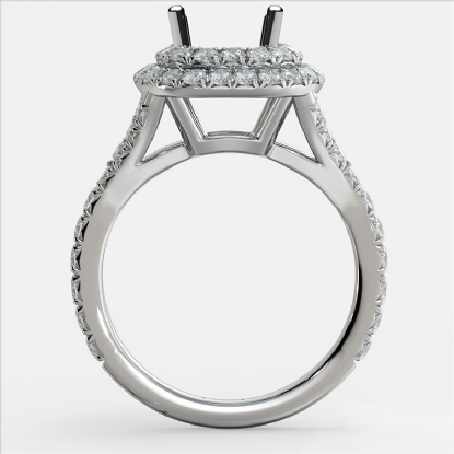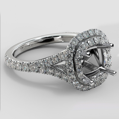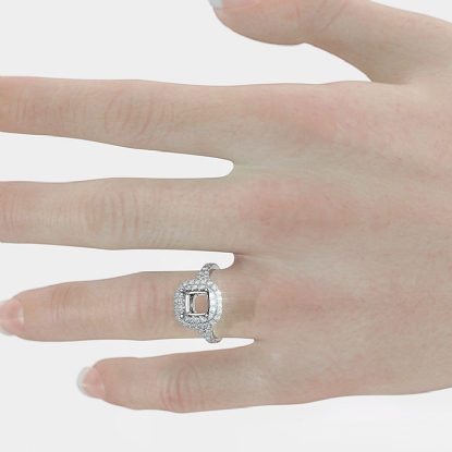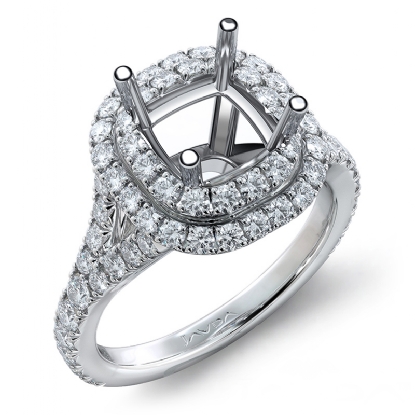 French Cut Halo Diamond Engagement Ring Cushion Semi Mount 14K White Gold 1.4Ct