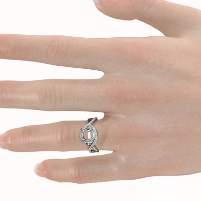 Diamond Engagement Ring Round Semi Mount 14K White Gold Halo Pave Setting 0.34Ct