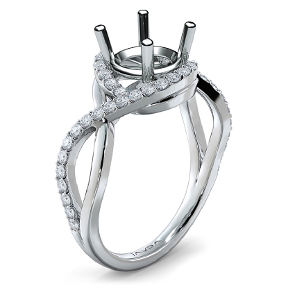 4.4 gram Celebrate lavishly with this 14K white gold round semi mount diamond engagement ring. It features 0.34ct. round diamonds in Halo Pave setting, on the magnificent halo & criss cross shank.