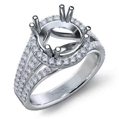 Halo U Cut Prong Diamond Engagement Ring Round Semi Mount 14k White Gold 1.0Ct