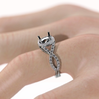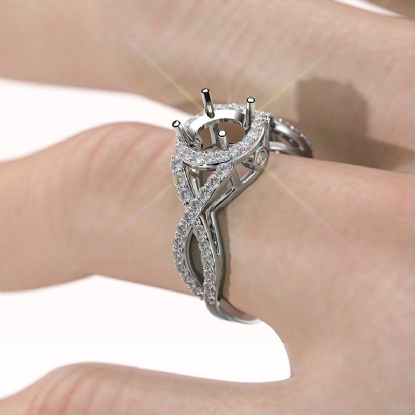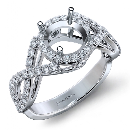 Halo XOXO Diamond Engagement Ring 14K White Gold Round Semi Mount Band 0.90Ct
