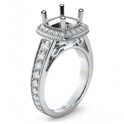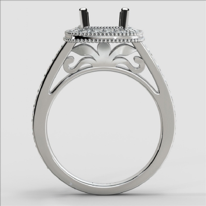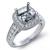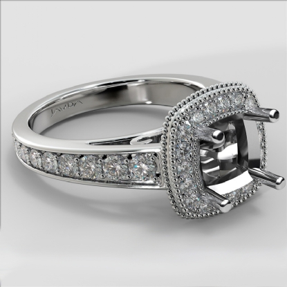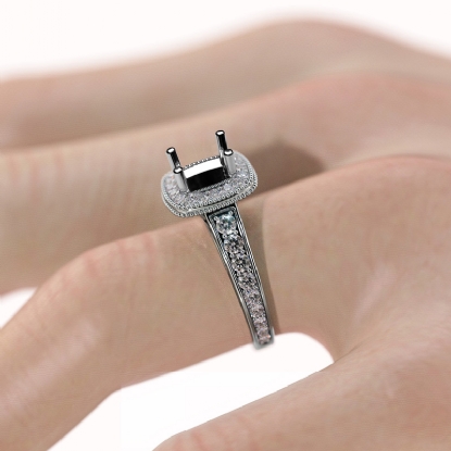 Diamond Engagement Cushion Semi Mount 14K White Gold Halo Milgrain Ring 0.80Ct