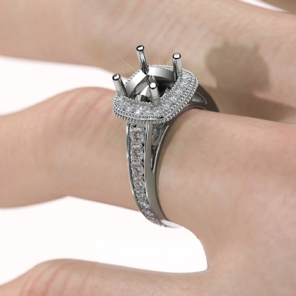 Get ready for glamour, with this striking diamond engagement ring made in 14K white gold. This cushion semi mount ring features 0.80ct. pave set round diamonds & milgrain dazzling in halo & the shank. It weights 6.5 grams.