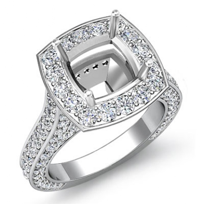 2.1Ct Cushion Diamond Engagement Ring 14K White Gold Halo Pave Setting SemiMount