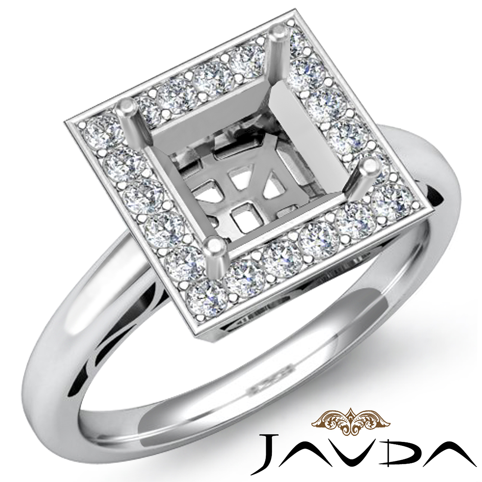 0.36Ct Halo Setting Diamond Engagement Princess Semi Mount Ring 14K White Gold