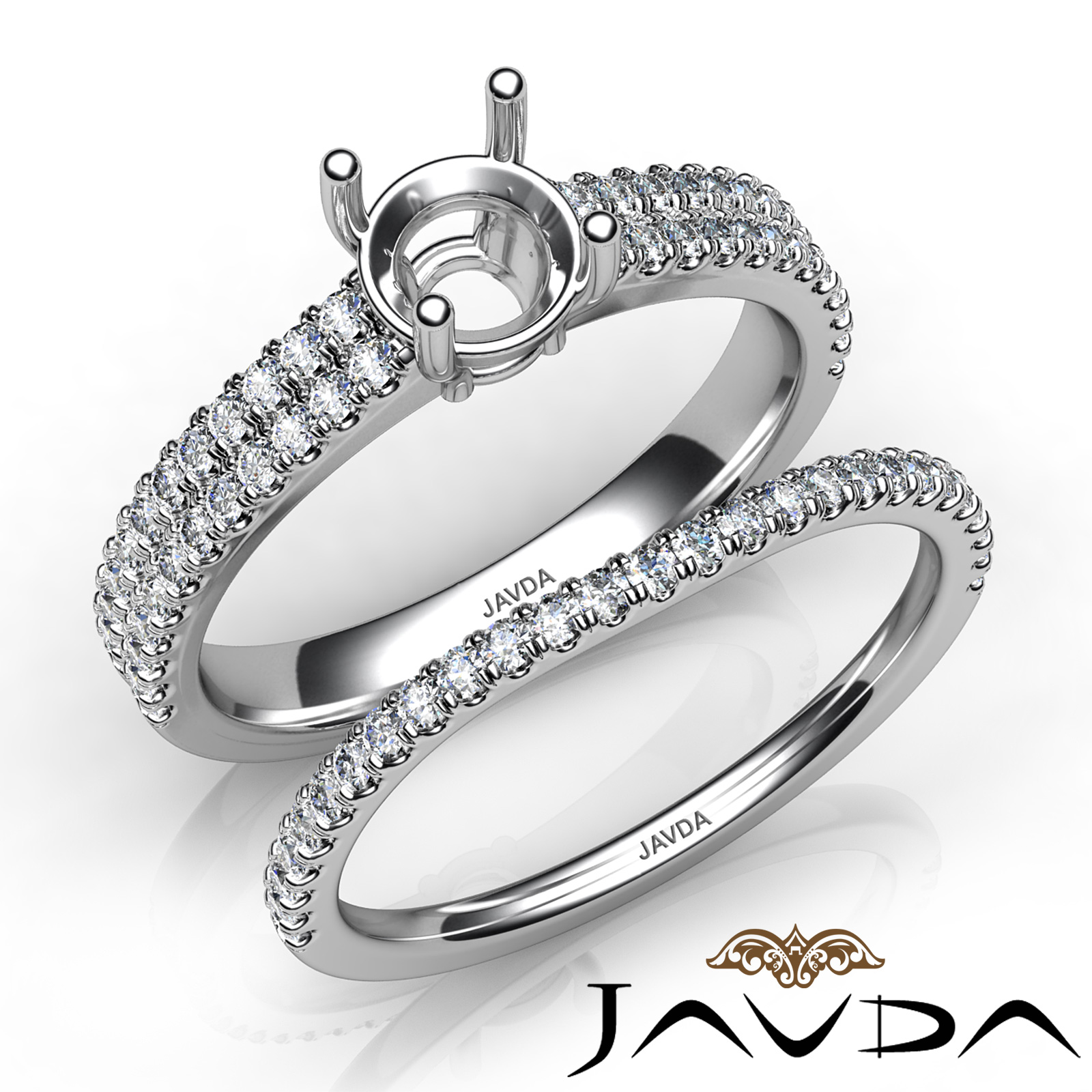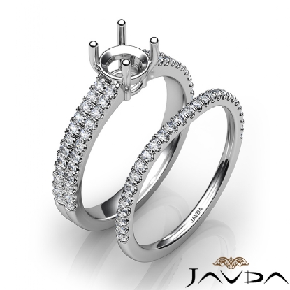 Diamond Engagement Ring Round Semi Mount U Cut Bridal Set 14K White Gold 0.80Ct.