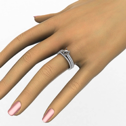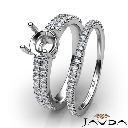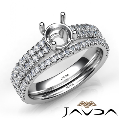 Breathtaking in design, this 14K white gold round semi mount engagement ring comes with a matching band. It features 0.80ct. round U Split Cut Prong set diamonds in shank. This bridal set will be the perfect choice.