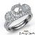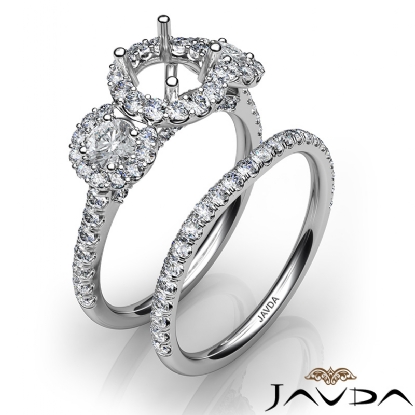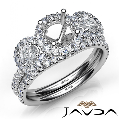 Halo Diamond 3 Stone Engagement Ring Bridal Set 14K White Gold Semi Mount 1.45Ct
