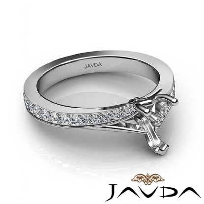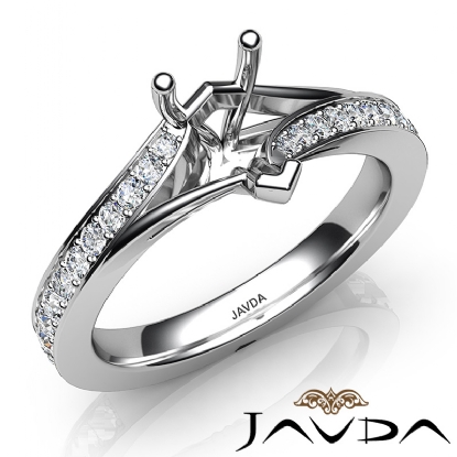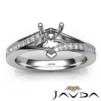 Pave Setting Diamond Engagement Pear Semi Mount Ring 14K White Gold 0.35Ct