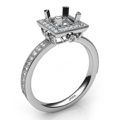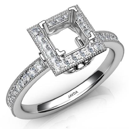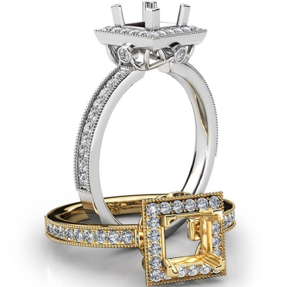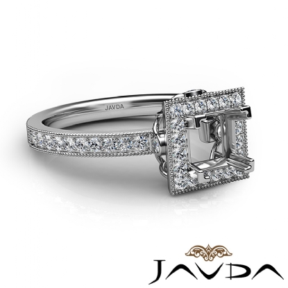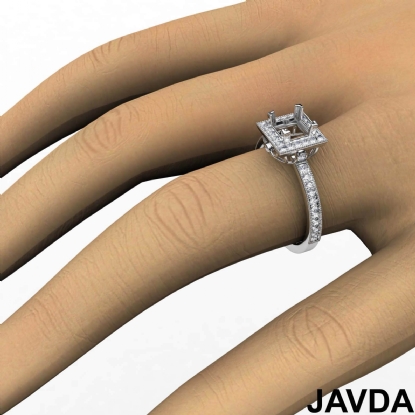 Halo Pave Set Diamond Engagement 14K White Gold Princess Semi Mount Ring 0.50Ct
