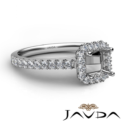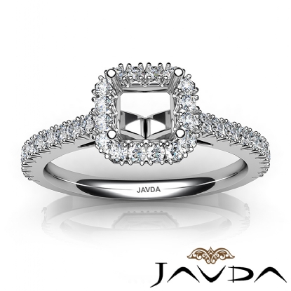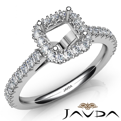 French Cut Pave Set Diamond Engagement Asscher Semi Mount Ring 14K W Gold 1Ct