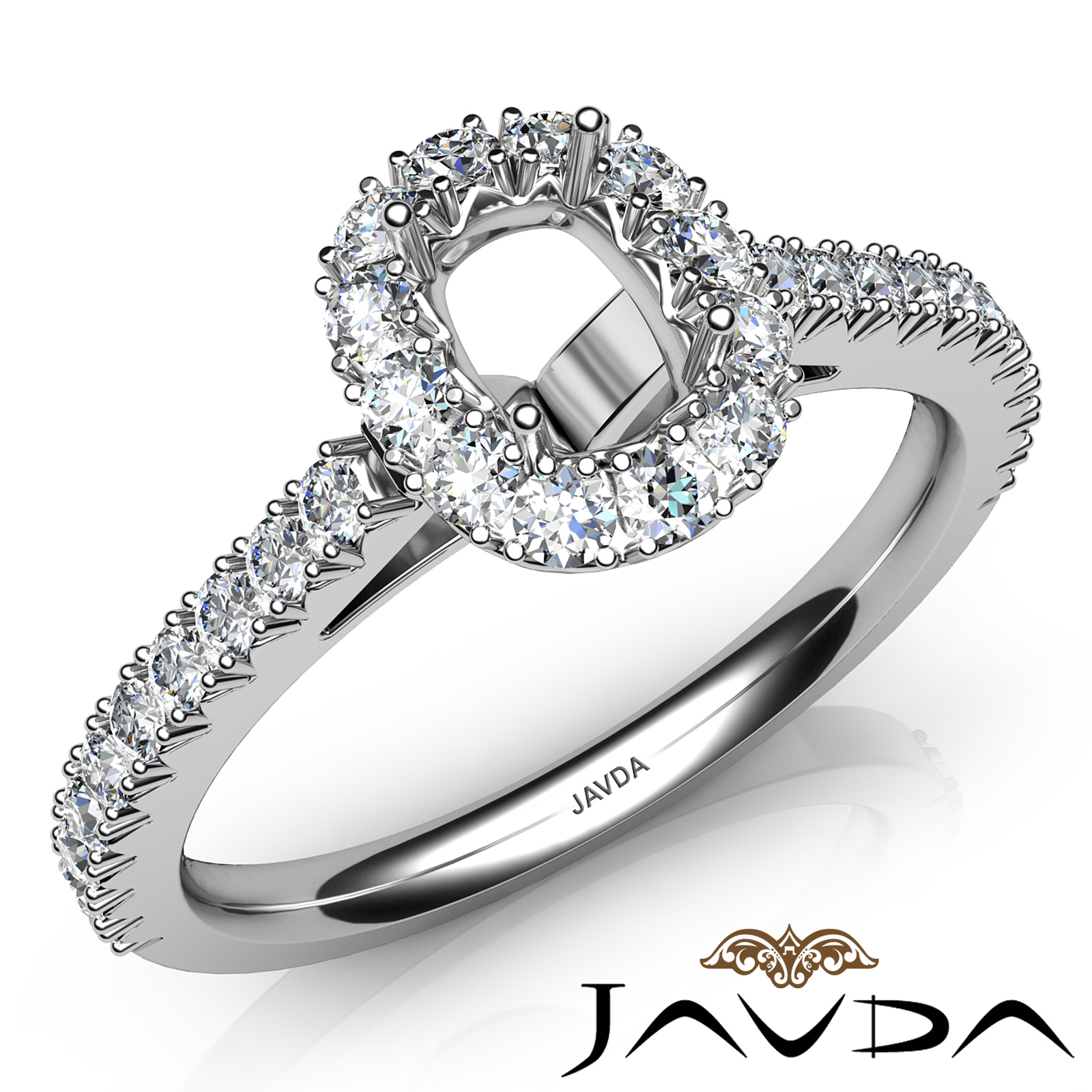 1 Carat Round Diamond Women Engagement & Anniversary Solid Ring made in 14 Karat White Gold. Diamonds are set in French Cut Pave Setting for Cushion Cut in a Semi Mount.