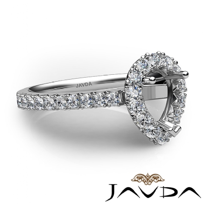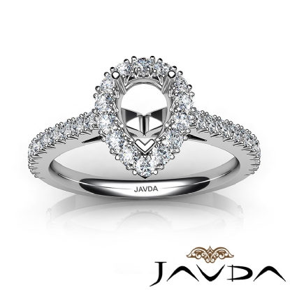 French Cut Pave Set Diamond Engagement Pear Semi Mount Ring 14K White Gold 1Ct