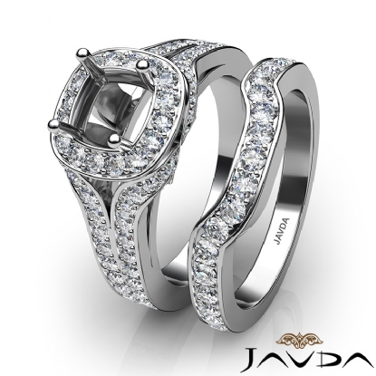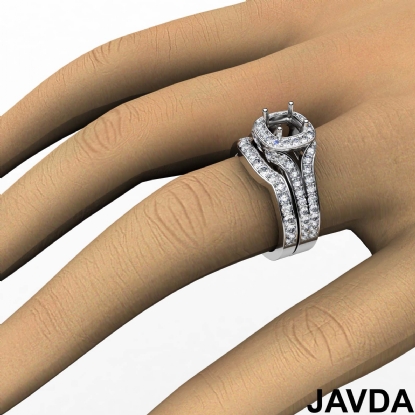 Halo Pave Diamond Bridal Set Engagement Ring Round Semi Mount 14K W Gold 1.9Ct