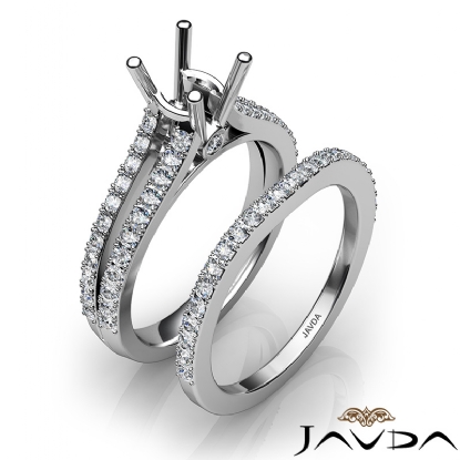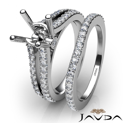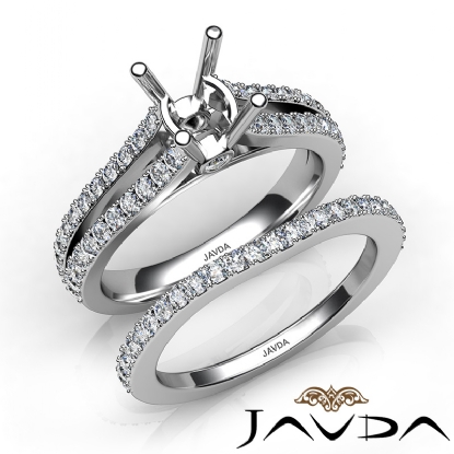 Split Shank Diamond Engagement Ring Round Bridal Set 14K W Gold Semi Mount 1.1Ct