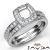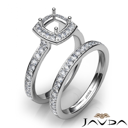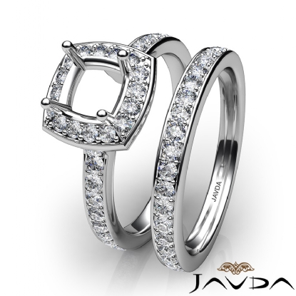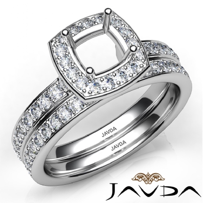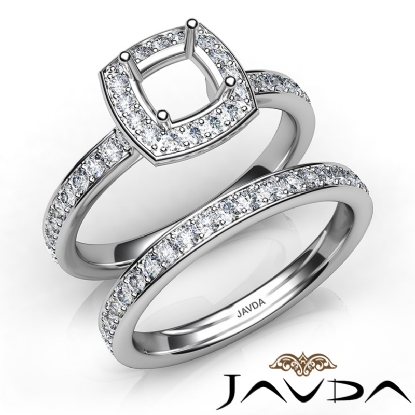 Cushion Halo Diamond Semi Mount Engagement Ring Bridal Set 14K White Gold 0.95Ct