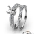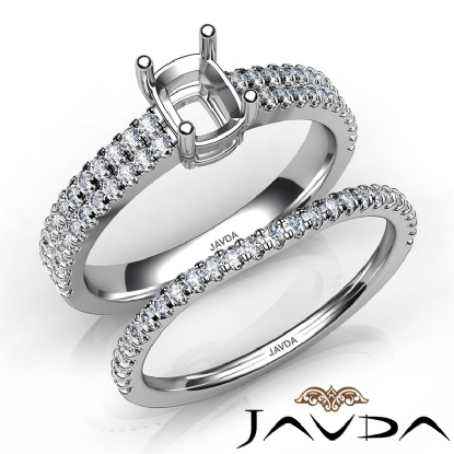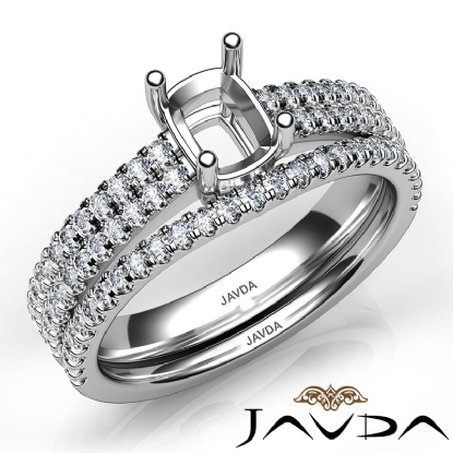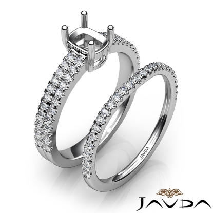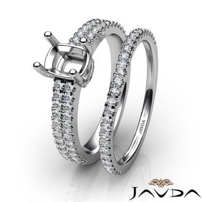 Diamond Engagement Ring Cushion Semi Mount U Cut Bridal Set 14K W Gold 0.80Ct.
