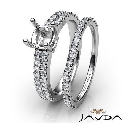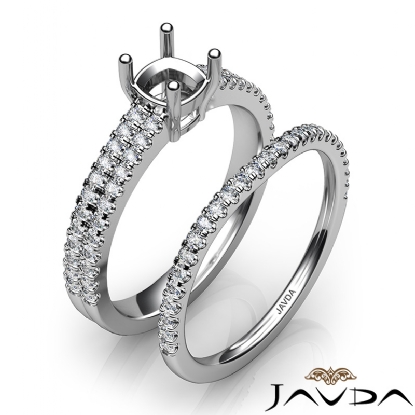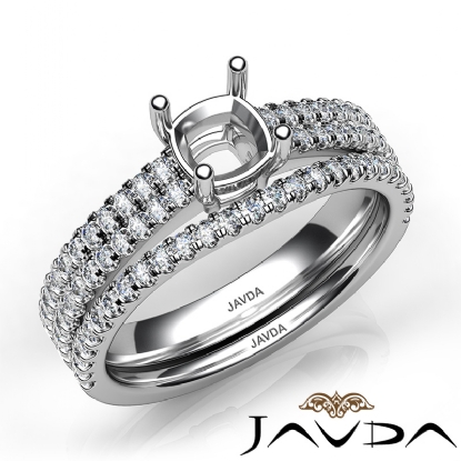 Diamond Engagement Cushion Semi Mount Ring U Cut Bridal Set 14K W Gold 0.80Ct.