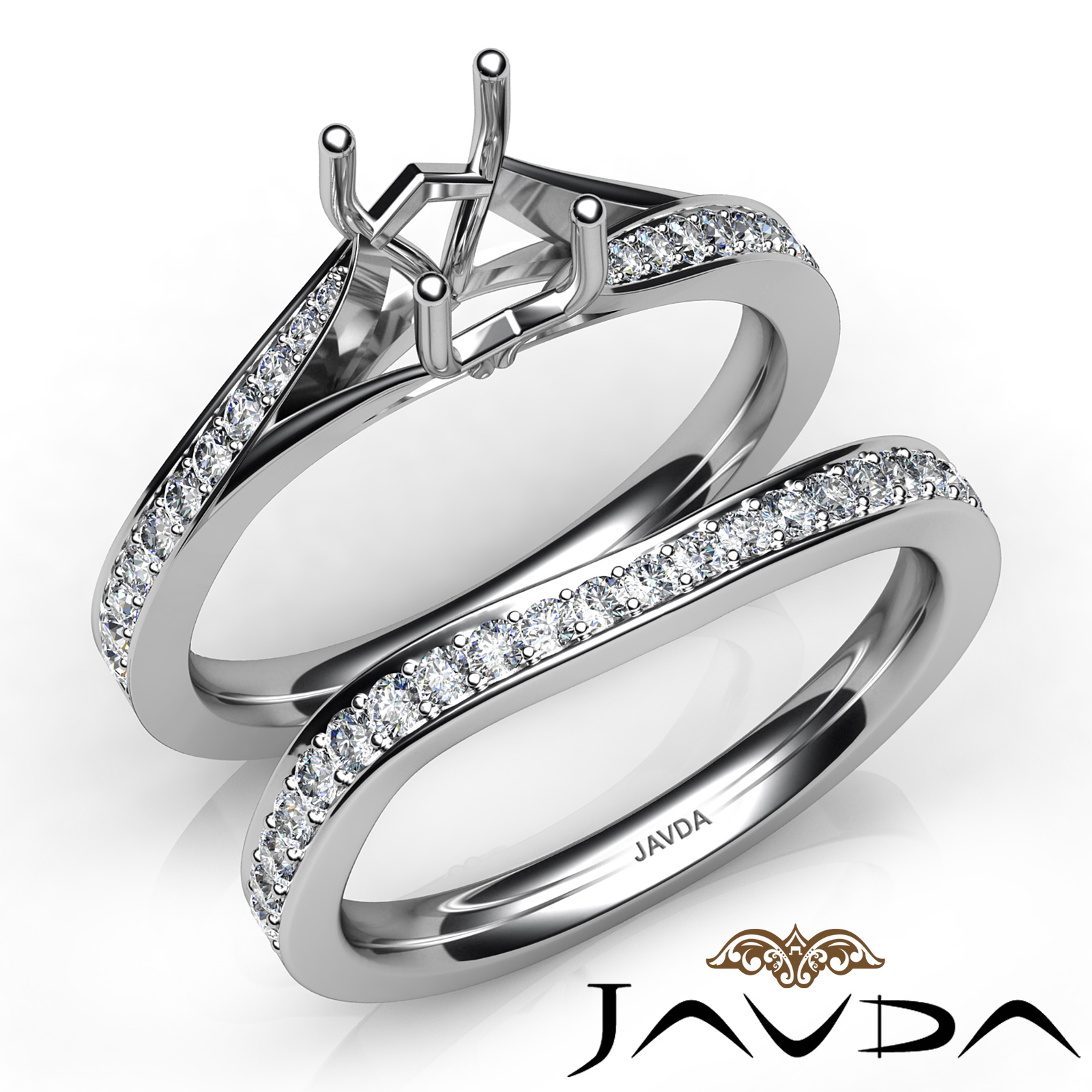 Pave Diamond Engagement Ring Cushion SemiMount Bridal Set 14K White Gold 0.90Ct.