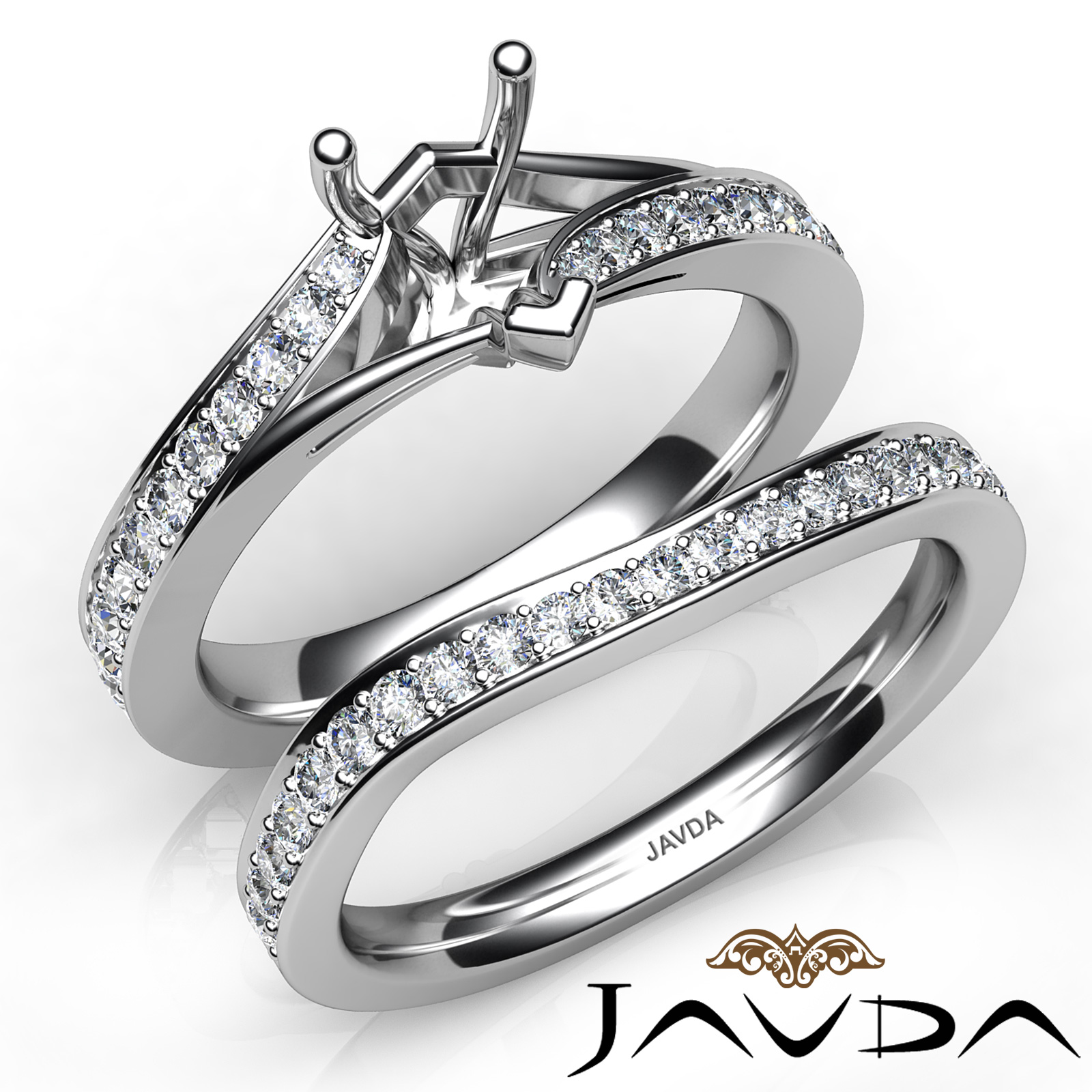 Pave Diamond Engagement Ring Heart Semi Mount Bridal Set 14K White Gold 0.90Ct.