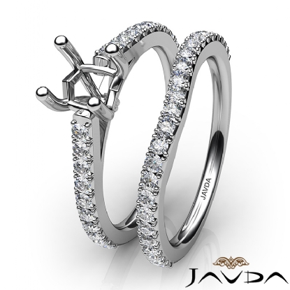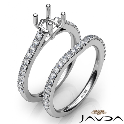 Diamond Cushion Cut Semi Mount Engagement Ring Bridal Set 14K White Gold 0.80Ct.