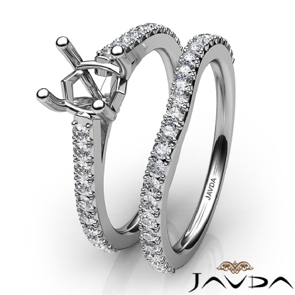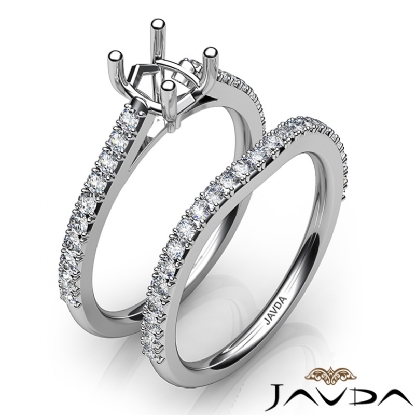 Oval Cut Diamond Semi Mount Engagement Ring Bridal Set 14K White Gold 0.80Ct.