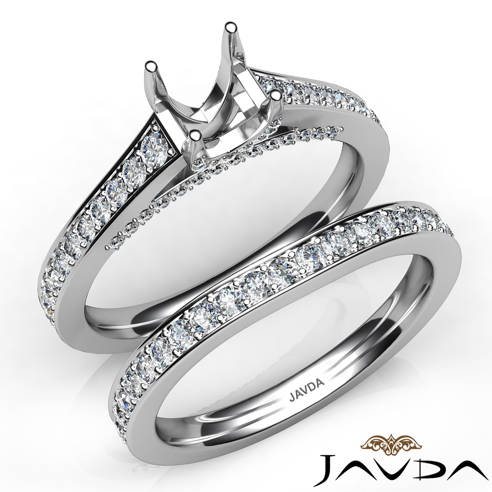 Cushion Cut Diamond Engagement Semi Mount Ring Bridal Set 14K White Gold 1.25Ct.