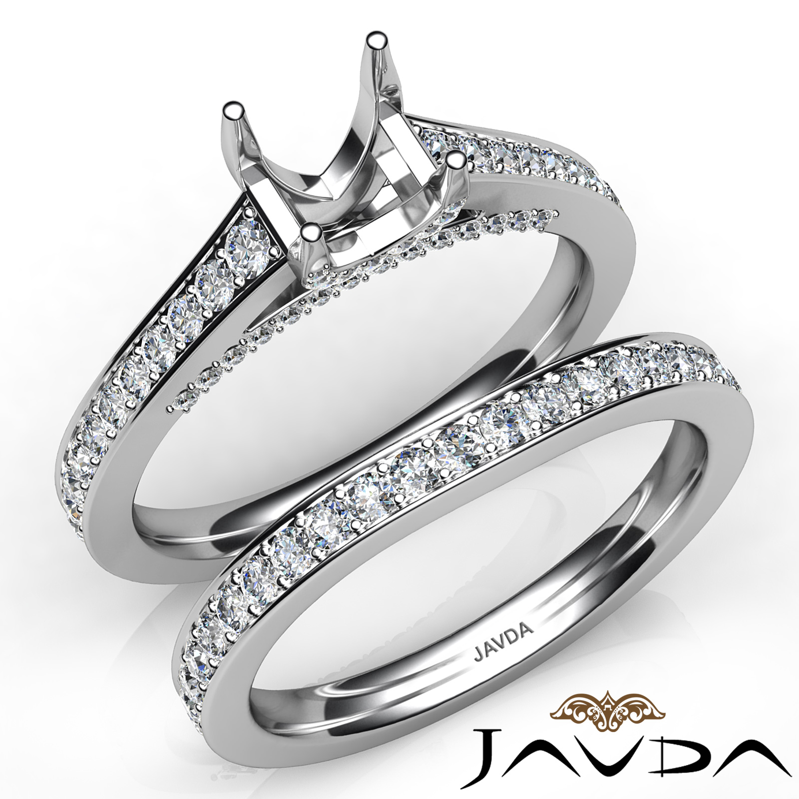 Princess Diamond Engagement Semi Mount Ring Bridal Sets 14K White Gold 1.25Ct.