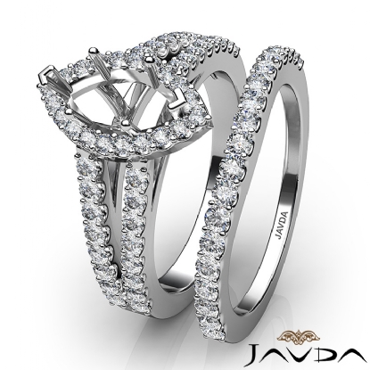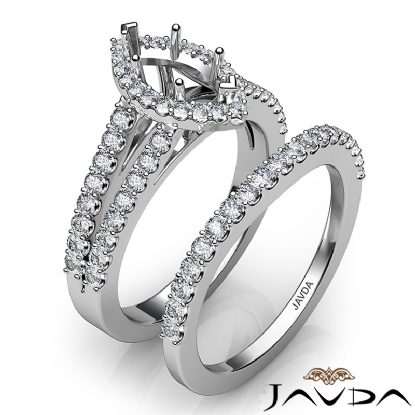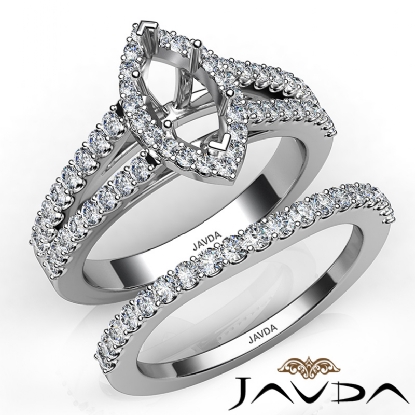 U Prong Diamond Engagement Semi Mount Ring Marquise Bridal Set 14K W Gold 1.25Ct