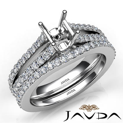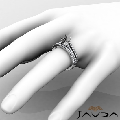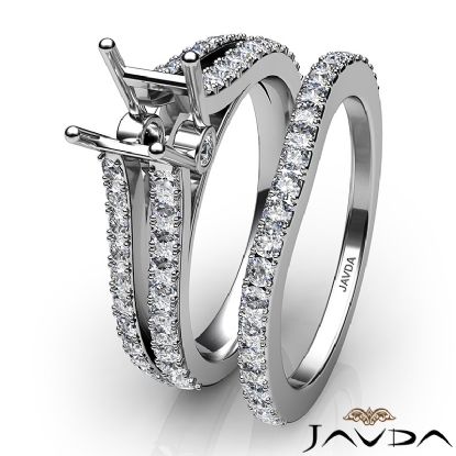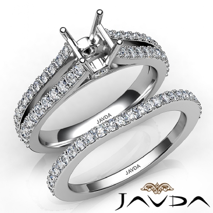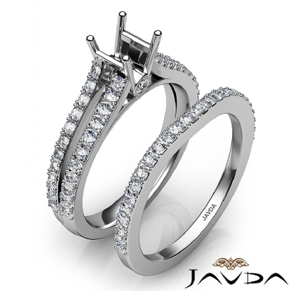 Prong Diamond Engagement Ring Asscher Bridal Set 14K White Gold Semi Mount 1.1Ct