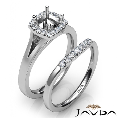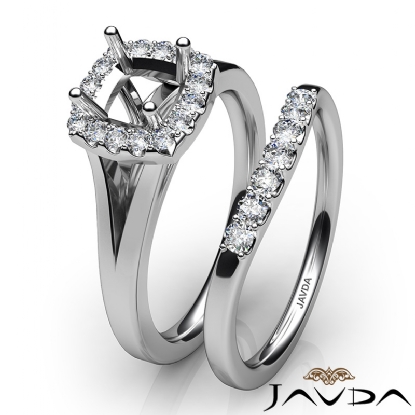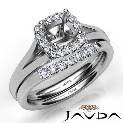This Elegant & Beautiful 0.41ct. bridal set is such a stunner! It consists of a cushion cut semi mount engagement ring and a matching band, featuring U Cut Prong set diamonds on halo and the shank. This beautiful diamond set is made in 14K white gold.