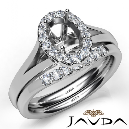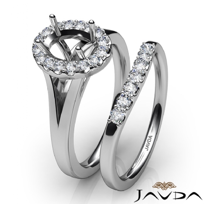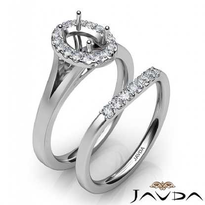 Oval Diamond U Prong Engagement Semi Mount Ring Bridal Set 14K White Gold 0.42Ct