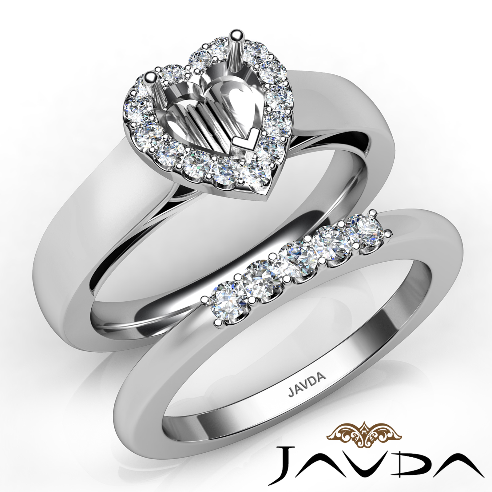 U Prong Diamond Engagement SemiMount Ring Heart Bridal Set 14K White Gold 0.40Ct