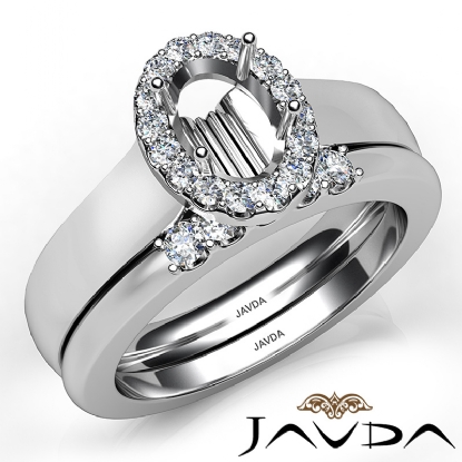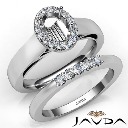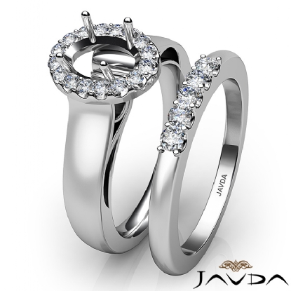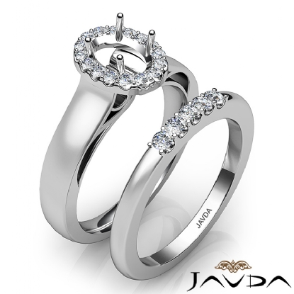 This Magnificent engagement ring and matching band feature an oval semi mount in Halo U Cut prong setting diamonds on shank also. This 0.43ct. bridal set is crafted in 14K white gold.