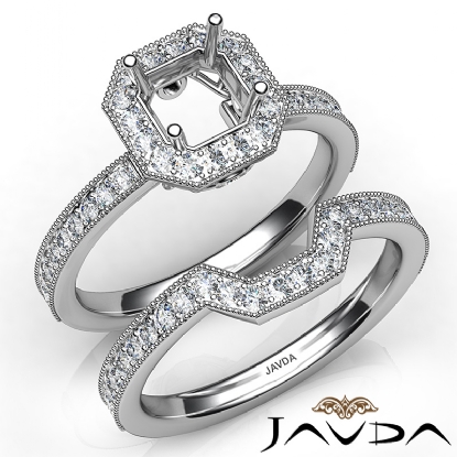 Pave Diamond Engagement Ring Asscher Bridal Set 14K White Gold Semi Mount 1Ct