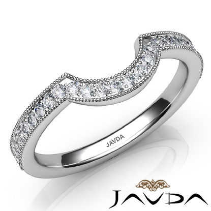 0.50 Carat Round Pave Diamond Women's Milgrain Wedding 2.6mm Band made in 14k White Gold. Ideal Matching Ring for the Item # R22050R Engagement Setting.