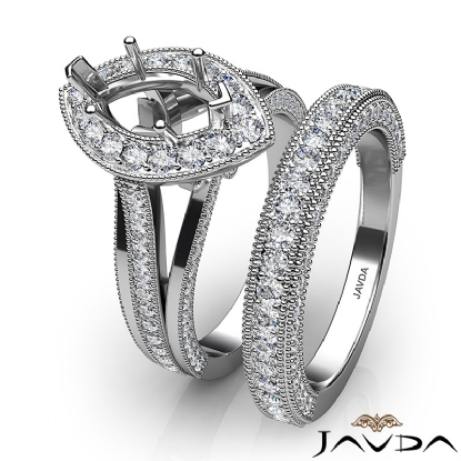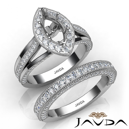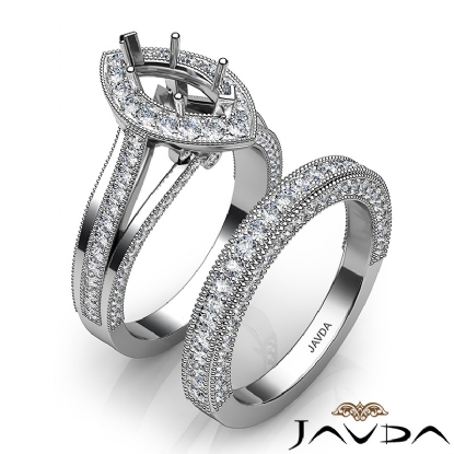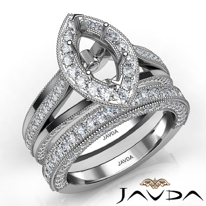 Pave Diamond Engagement Ring Bridal Sets 14K W Gold Marquise Semi Mount 1.70Ct.